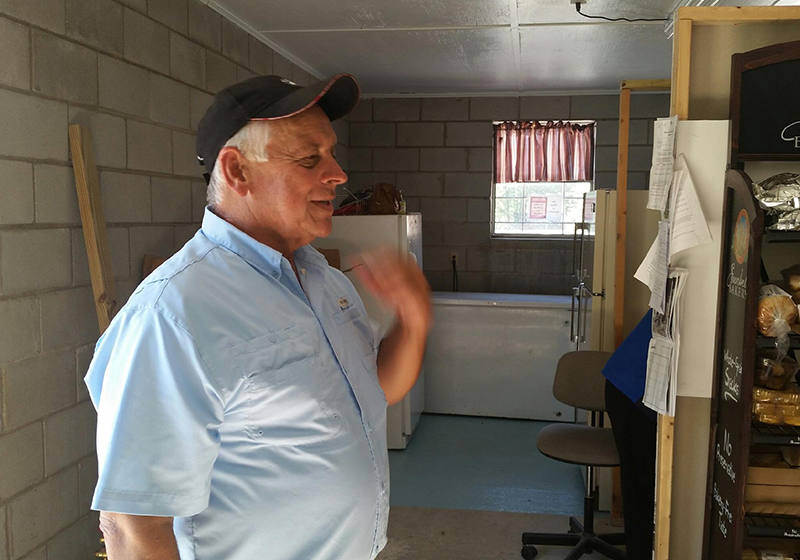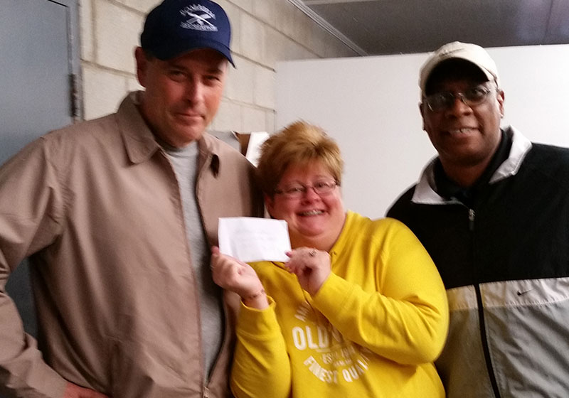 Mayor Hentz presents a check Pomaria Mayor, Darrel Hentz, presents a check to Board Member Melinda Long and co-founder Jeff Ham